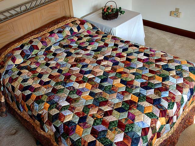 Hand painted Tumbling Blocks Quilt
