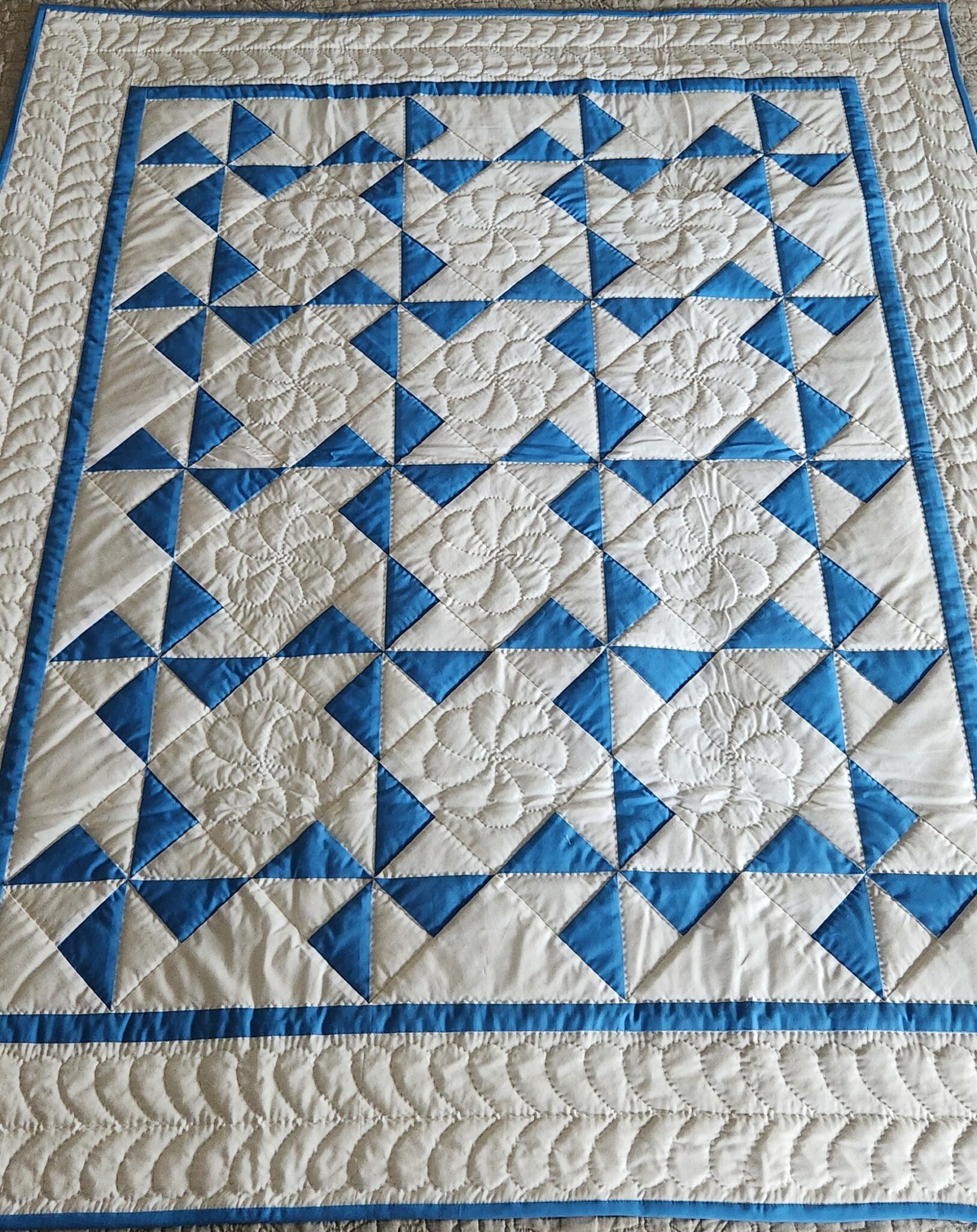 Blue and White Pinwheel Crib Quilt