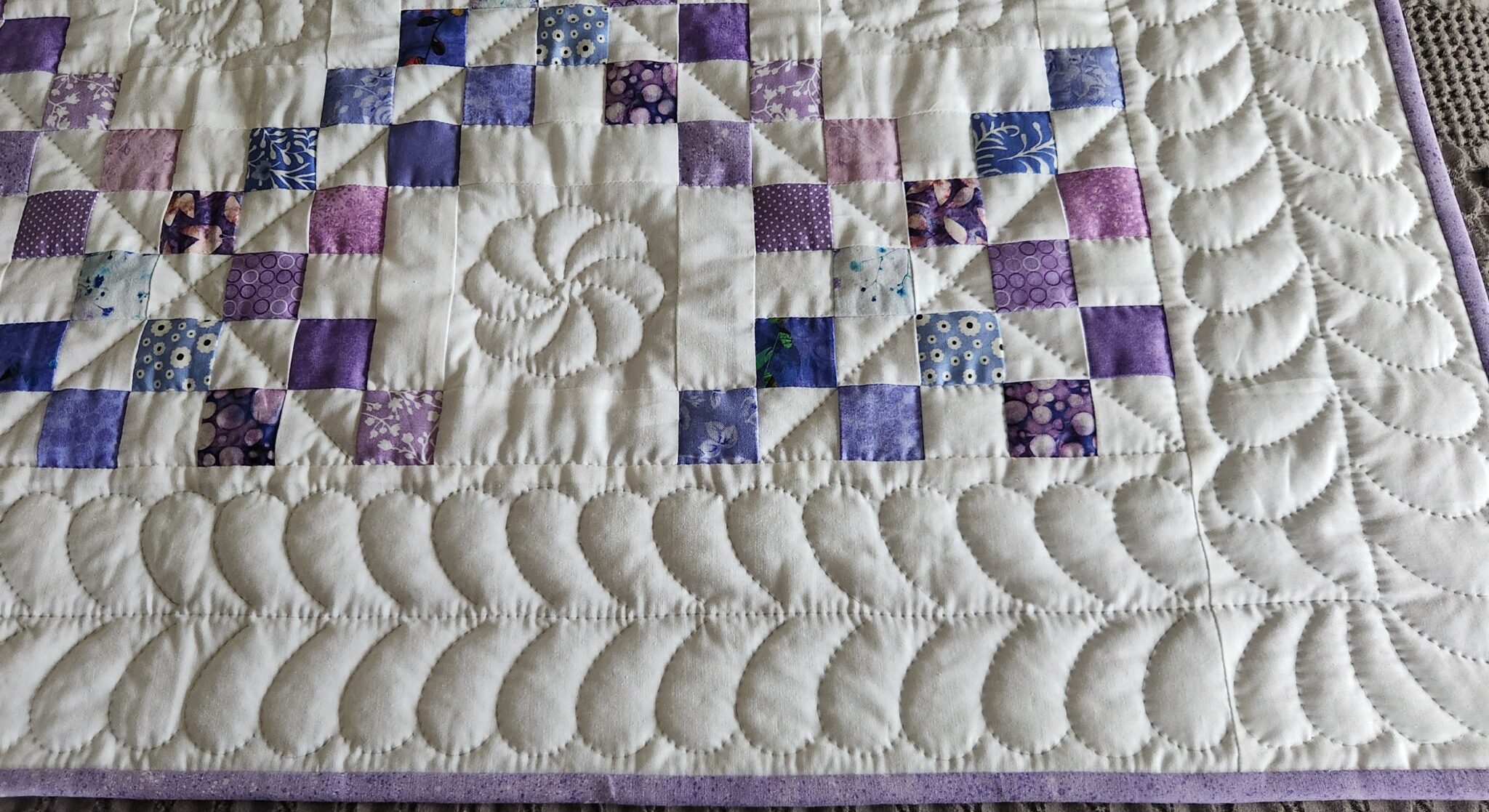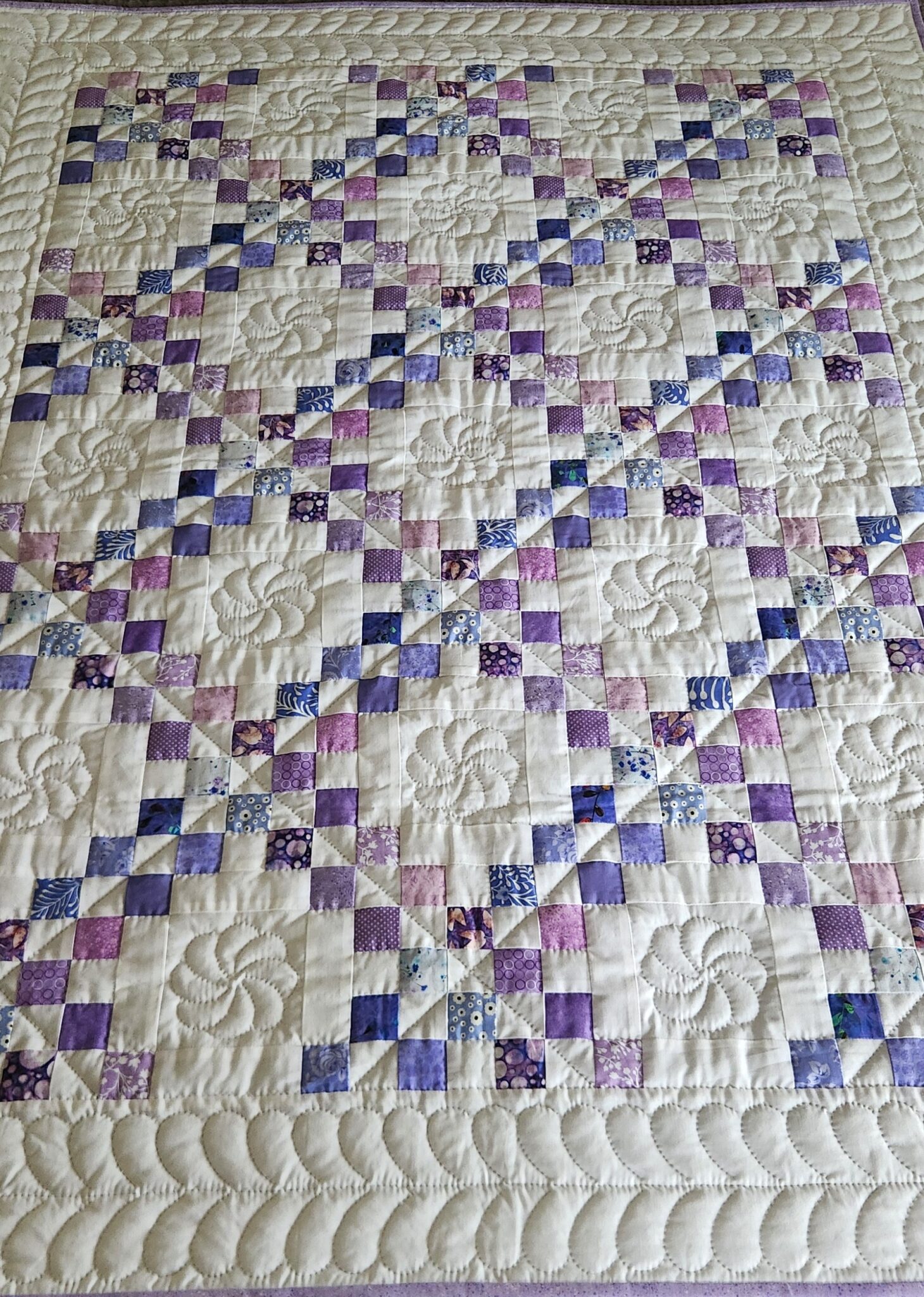 Lavender, Purple, Periwinkle, and White Irish Chain Quilt