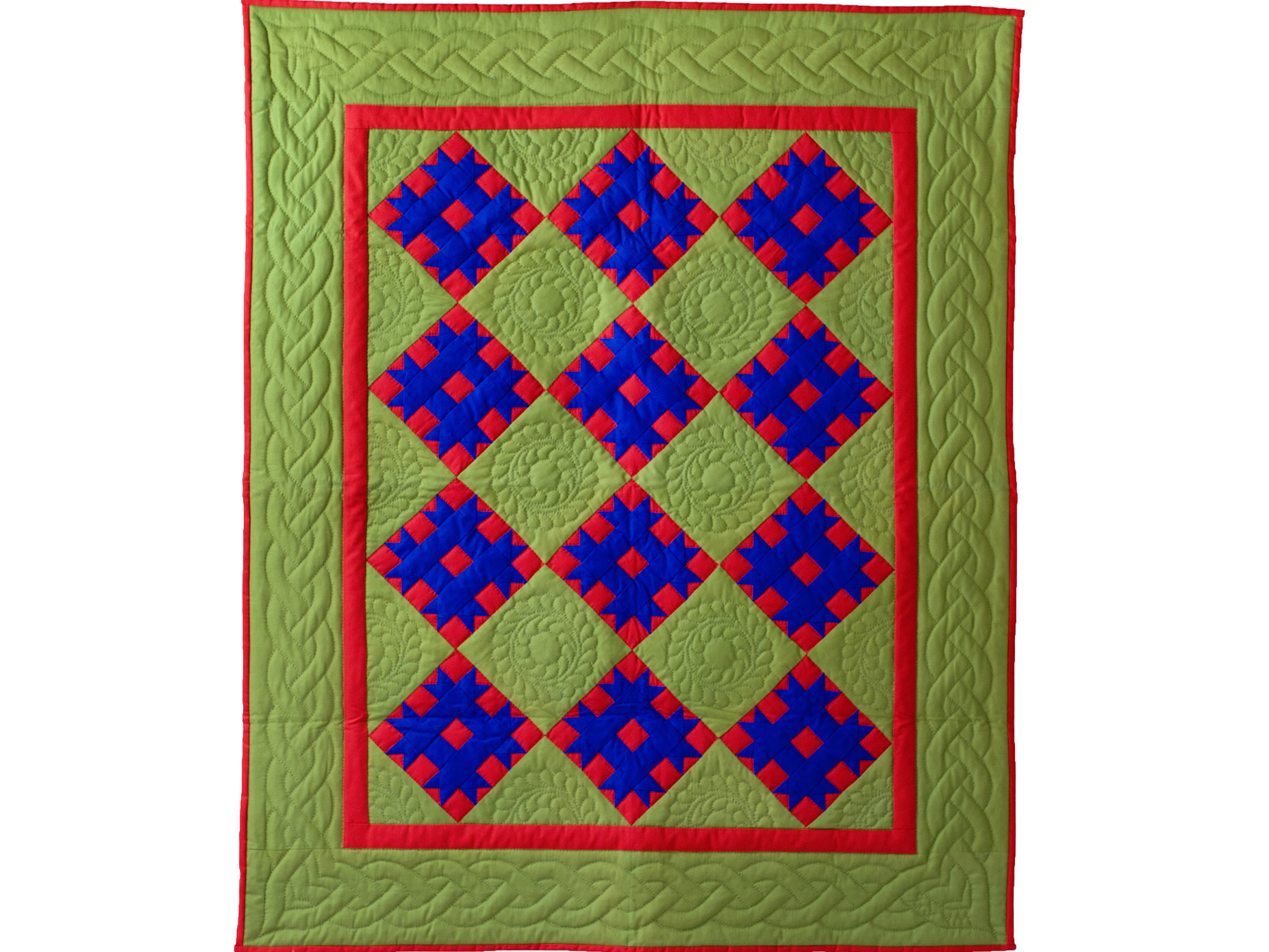 Indiana Amish Green, Blue and Red Susan's Quilt