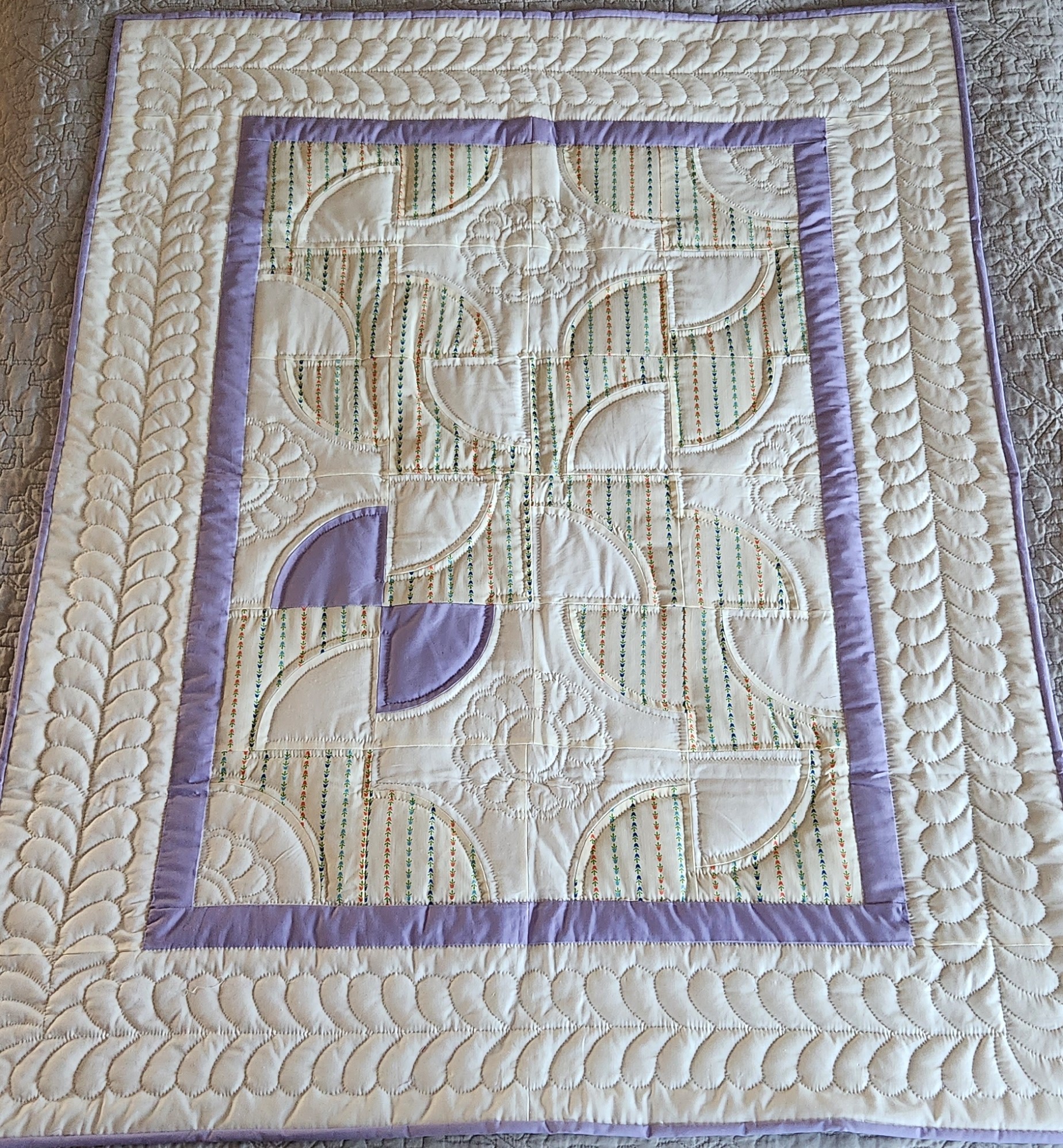Indiana Amish Lavender and Cream Solomon's Puzzle Crib Quilt