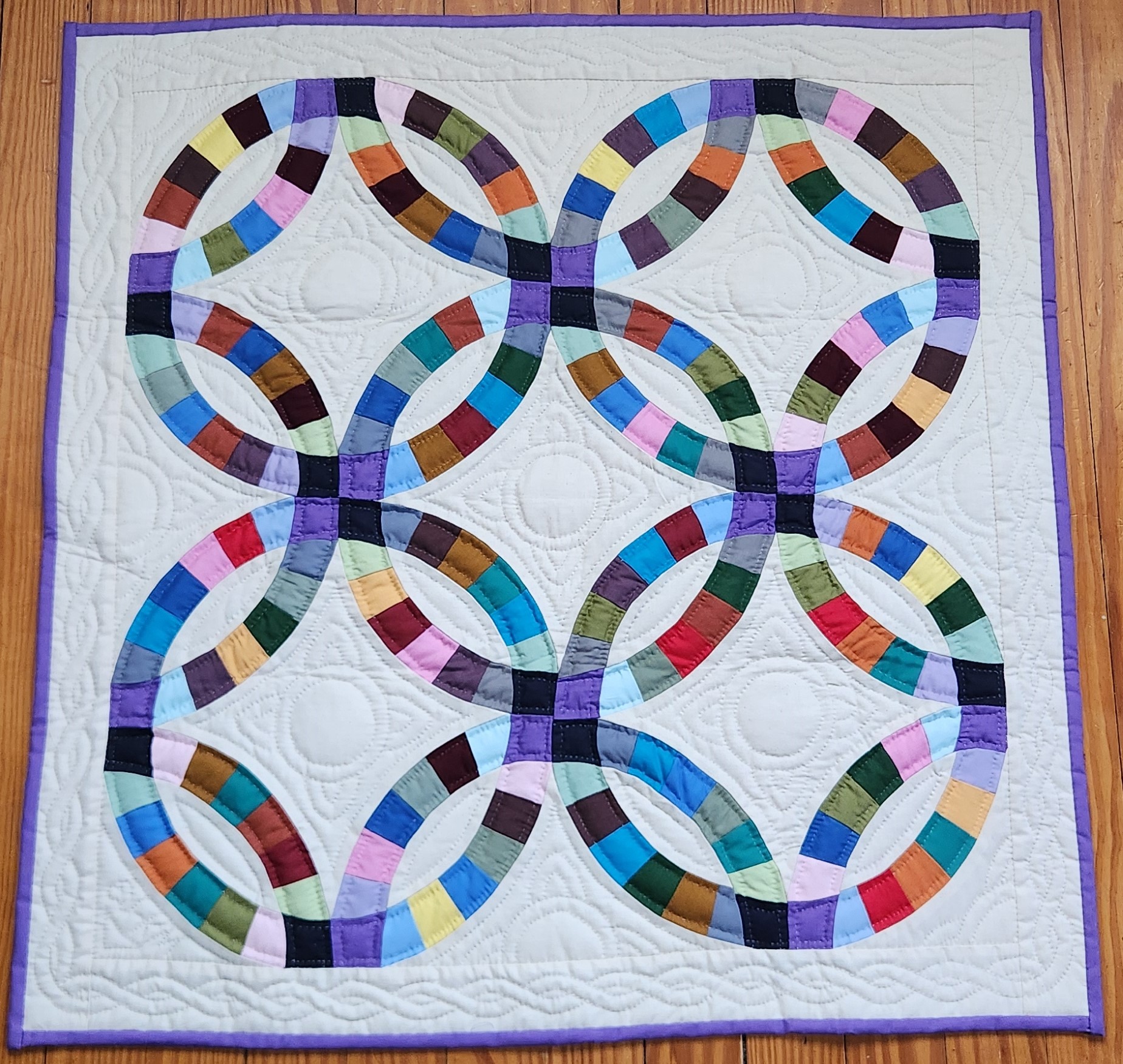 Indiana Amish Cream White Double Wedding Ring Wall Hanging (Purple Binding)