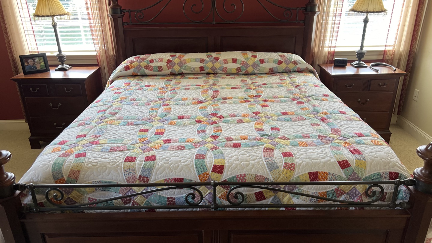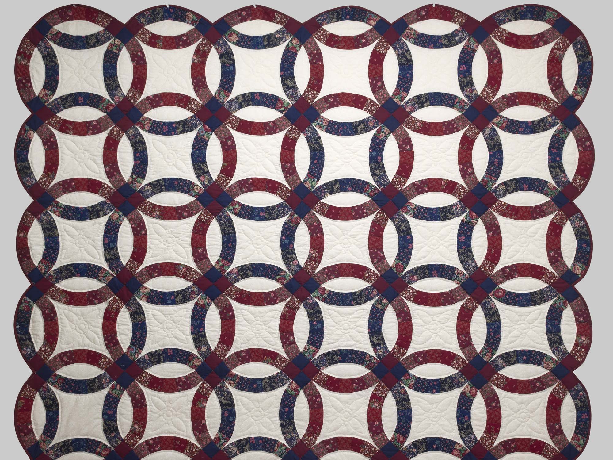 King Cranberry and Navy Blue Double Wedding Ring Quilt