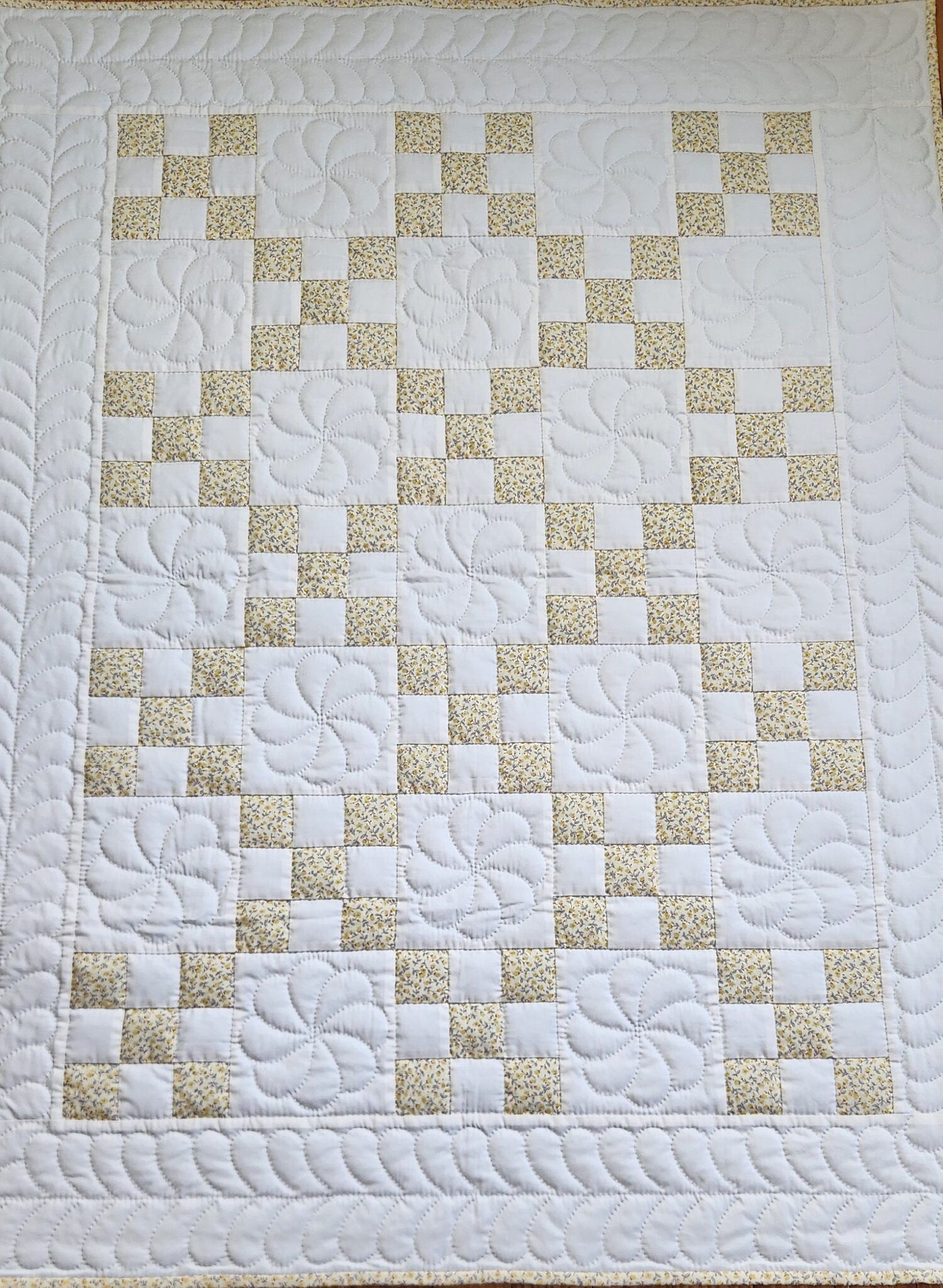 Vintage Yellow Floral Fabric Nine Patch Quilt
